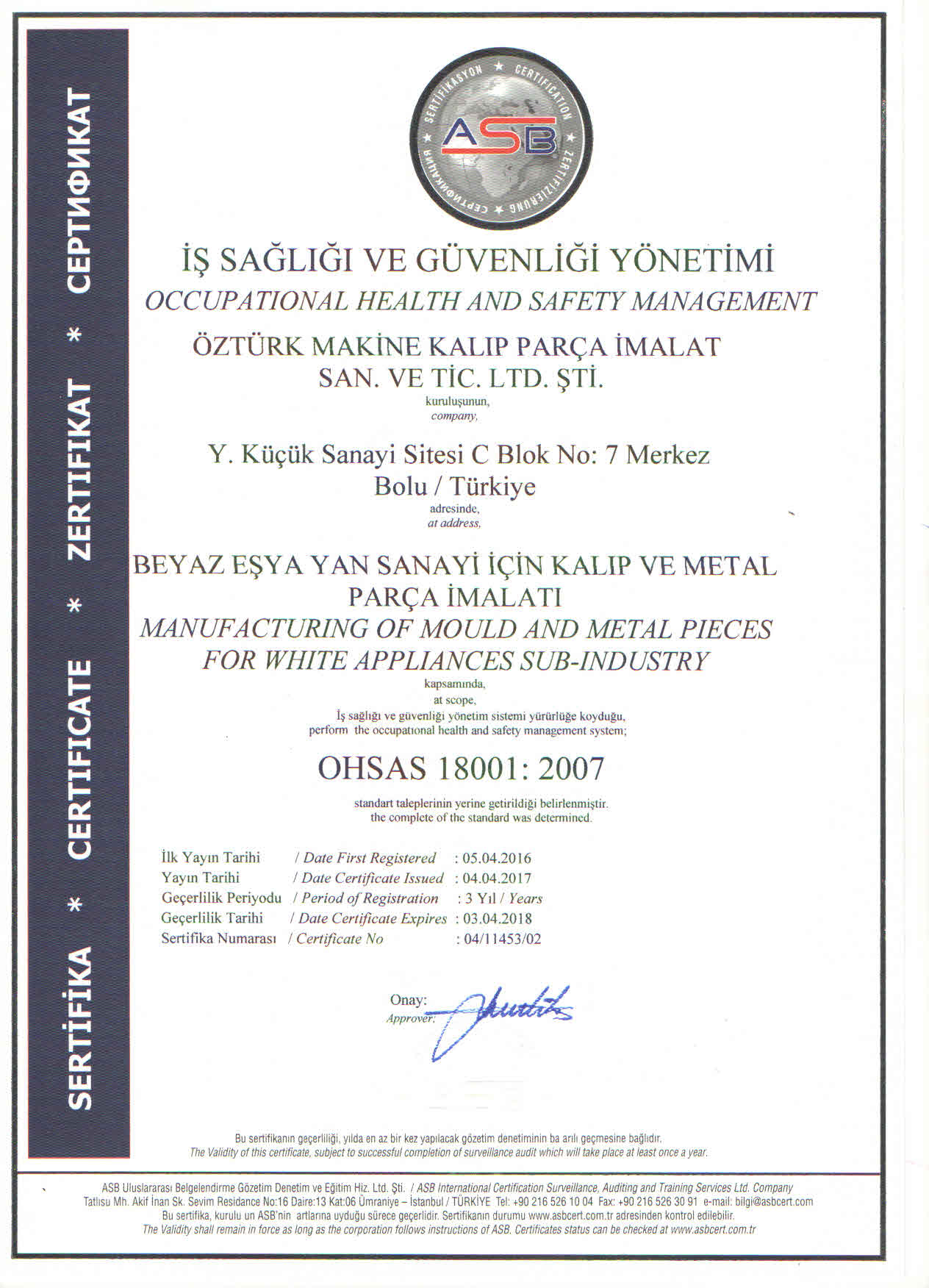 Sağlıklı ve güvenli bir çalışma kültürünün ÖZTÜRK MAKİNA KALIP PARÇA